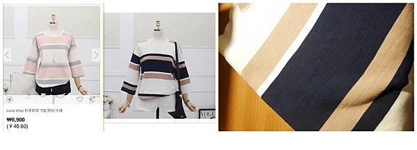 第四名:【Luna shop】橫條厚棉 T ( 台幣:248 元)